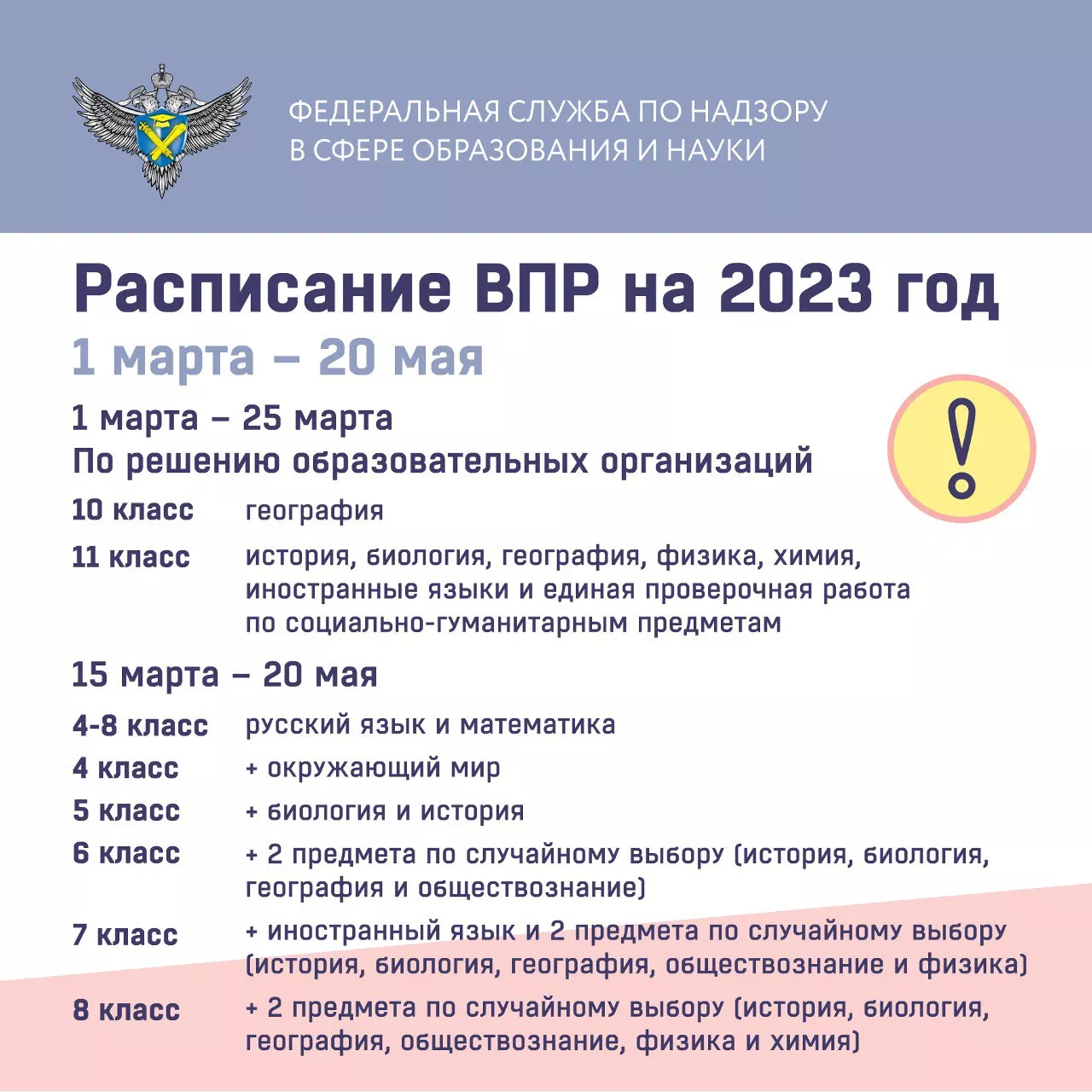 Даты проведения ВПР 2023 определяет приказ Рособрнадзора от 23.12.2022 № 1282
